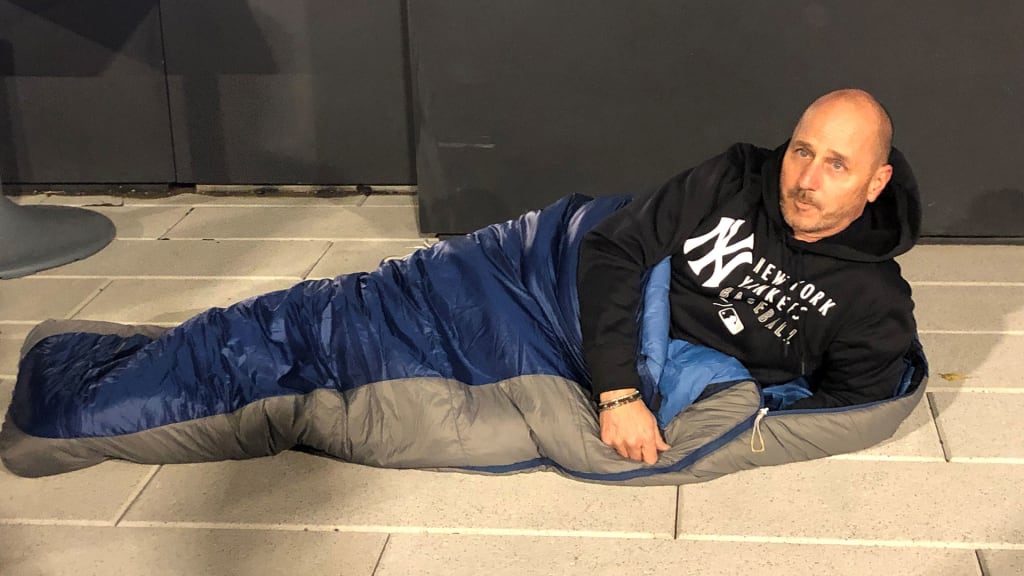 NEW YORK -- The ringtone of Brian Cashman’s cell phone filled the air repeatedly on Thursday evening, the Yankees general manager fielding trade and free-agent business even as he prepared to spend a windy and wet evening in a sleeping bag.