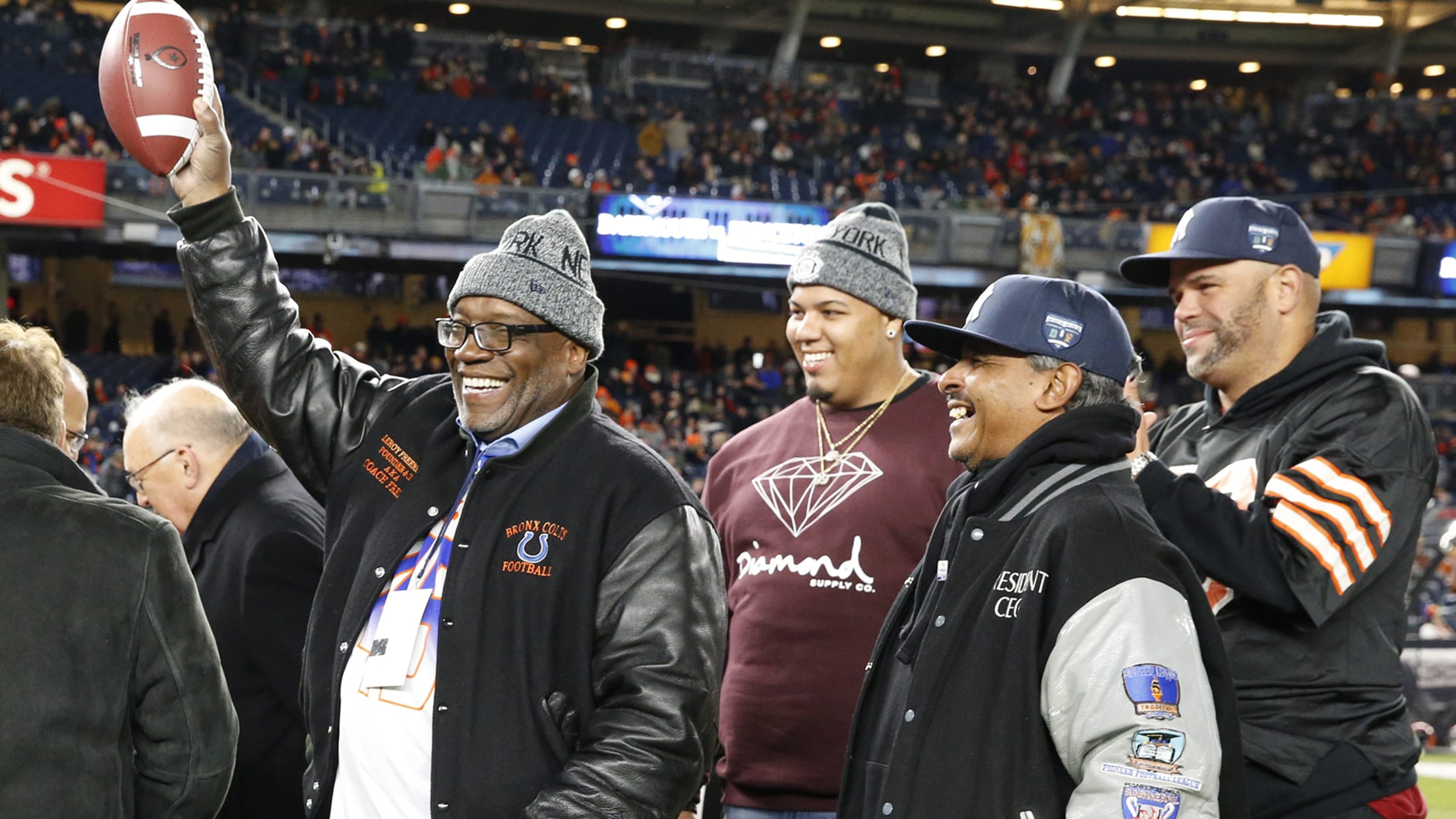 To celebrate 150 years of college football, the Pinstripe Bowl, along with the rest of Bowl Season, pledged to give a football to a member of their community to recognize their commitment to the community. The Pinstripe Bowl recognized Leroy Freeman Jr., owner of the Bronx Colts, for his leadership and contributions to youth football in the Bronx.