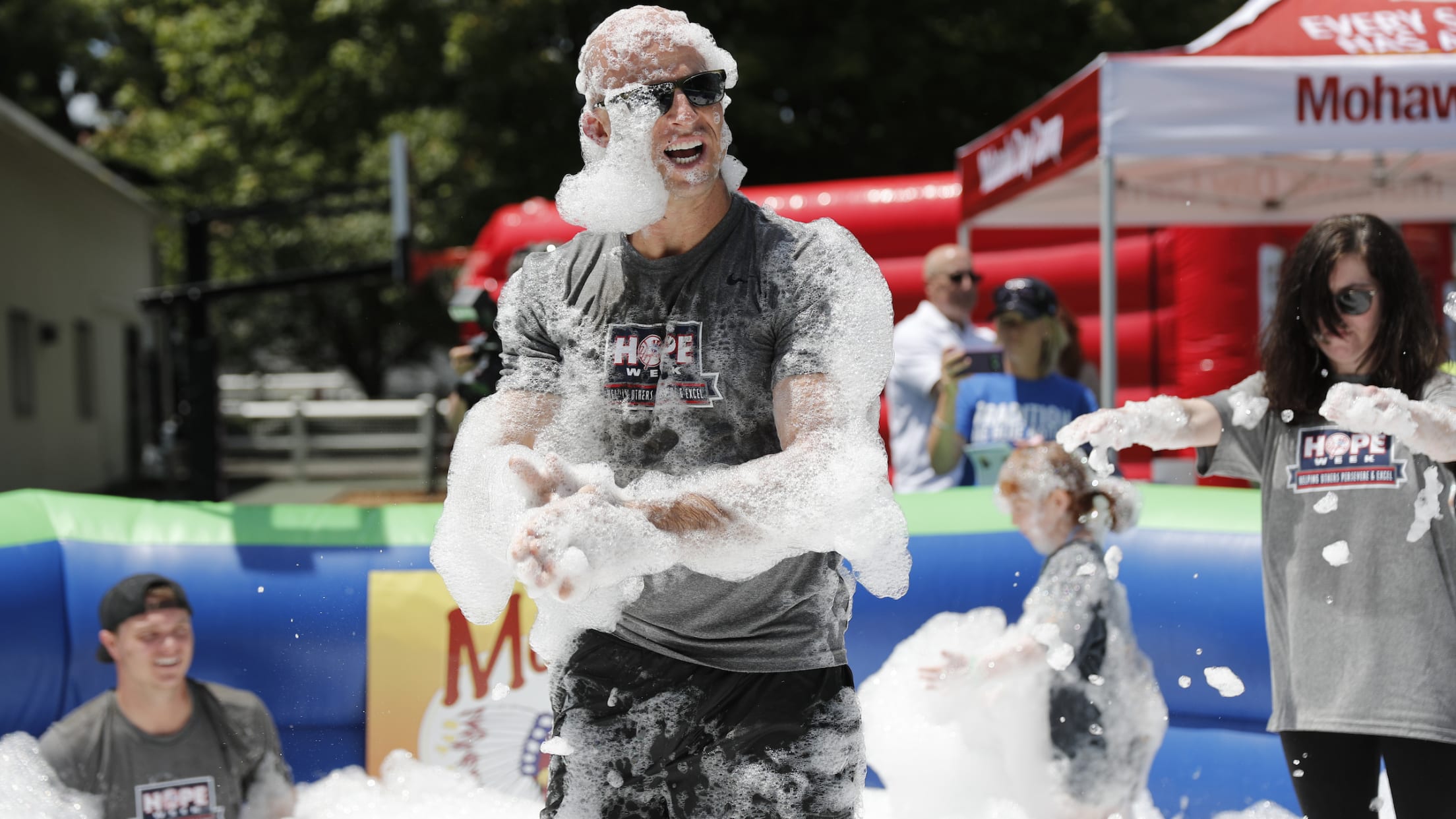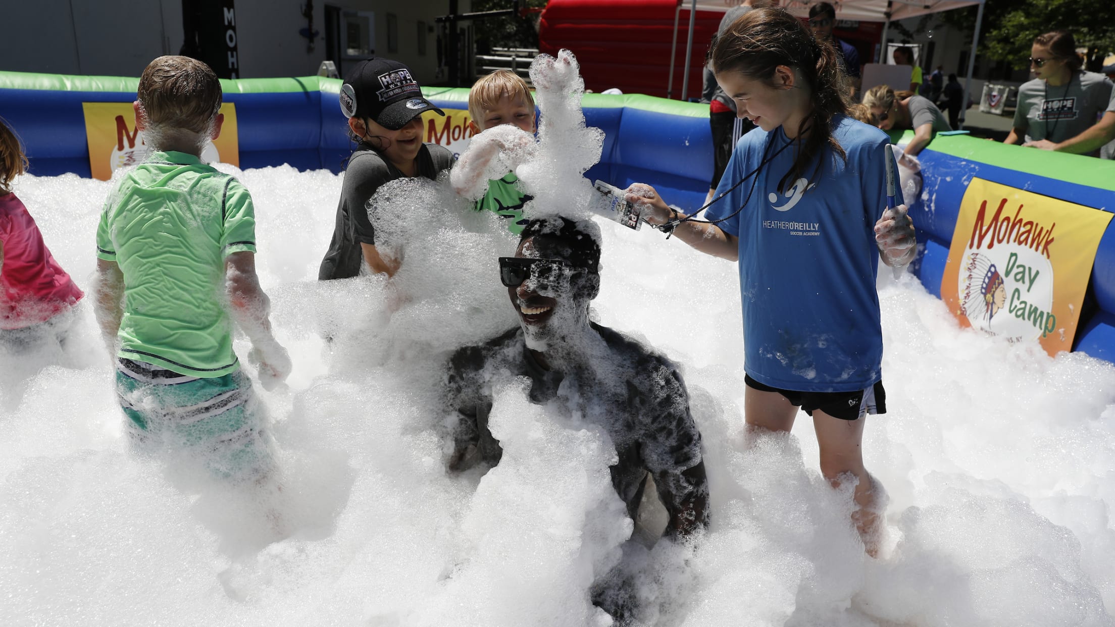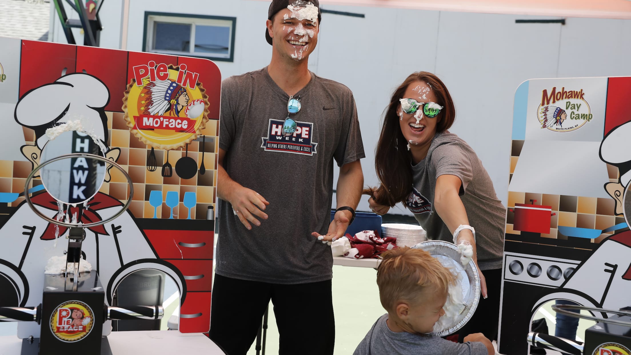 Earlier today, HOPE Week 2018 kicked off with Manager Aaron Boone, Brett Gardner, Sonny Gray, Didi Gregorius, bench coach Josh Bard, NYCFC Goalkeeper Brad Stuver and the founders of the Muddy Puddles Project, Cindy and Louis Campbell, surprising families that have been affected by pediatric cancer at Mohawk Day Camp. The group participated in a "Mess Fest" that included playing in mud and foam pits, "pie-face" and water fights.
