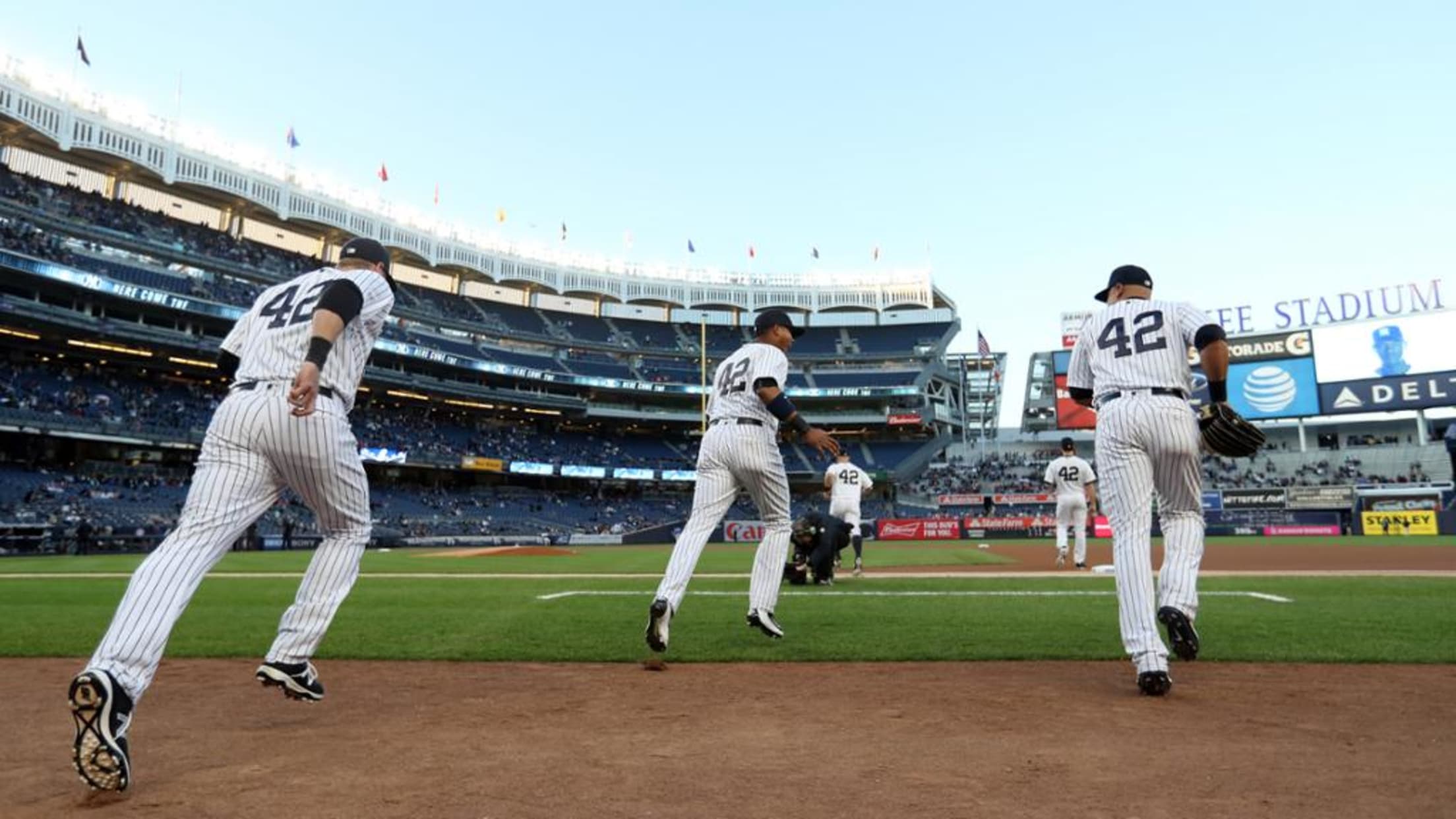 On April 15, 1997, the Yankees joined every MLB team in retiring No. 42 in honor of Jackie Robinson. Alex Trautwig/MLB Photos