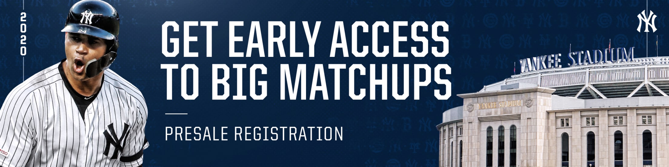 We want to thank you for your continued support of the New York Yankees by offering you the opportunity to participate in the individual game ticket presale. This presale opportunity will provide you the chance to purchase tickets for designated 2020 regular season games scheduled to be played by the Yankees at Yankee Stadium, such as Opening Day and games against the Chicago Cubs, the Boston Red Sox, or the New York Mets, subject to availability.
